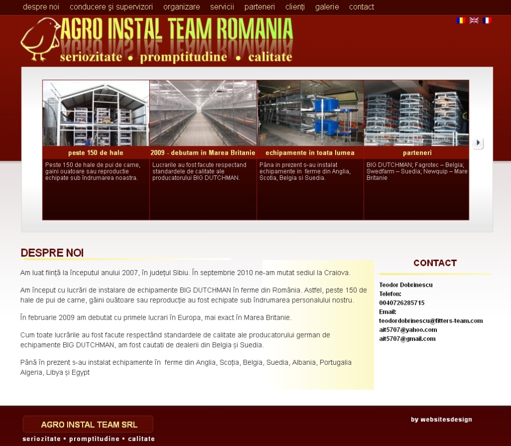 Suntem o agentie web design din Craiova formata dintr-o echipa puternica si eficienta, care combina experienta programatorilor seniori cu pasiunea, spiritul inventiv si viziunea entuziasta a tinerilor designeri web. Echipa noastra de web design este axata pe oferirea de servicii profesionale de creare site-uri atragatoare, functionale si de calitate. Facem continuu efort pentru pastrarea costurilor de realizare site la un nivel echilibrat fara a scadea standardul de calitate in executarea site-urilor. Aceste elemente ne desemneaza ca principala optiune in alegerea firmei care se va ocupa de crearea site-ului dumneavoastra.